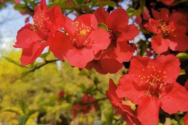 五、海棠。海棠花姿潇洒,花开似锦,是自古以来雅俗共赏的名花,素有“花中神仙”“花贵妃”“花尊贵”“国艳”之誉。常用有贴梗、西府、北美、冬红、垂丝、红宝石、八棱海棠等多个品种。花期:3月中旬至4月上旬。