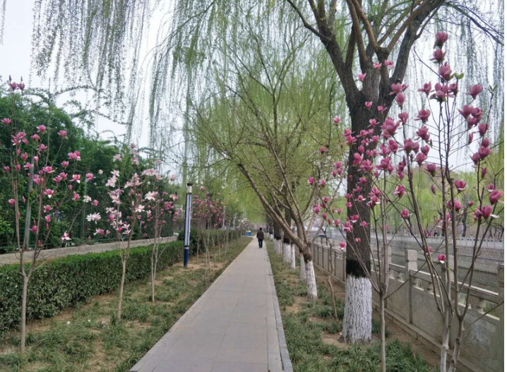图为师范街工农路民心河东玉兰花盛开。(资料图)石家庄市园林局供图