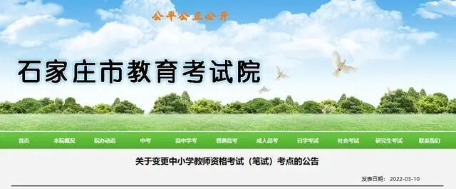 石家庄市教育考试院关于变更中小学教师资格考试(笔试)考点的公告