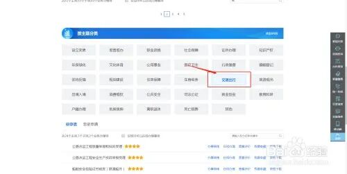 3进入交通出行页面,点击出租汽车驾驶员客运资格证核发。