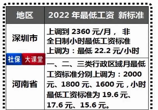 深圳市的最低工资标准将会调整为2360元/月,非全日制小时最低工资标准将会调整为22.2元/小时