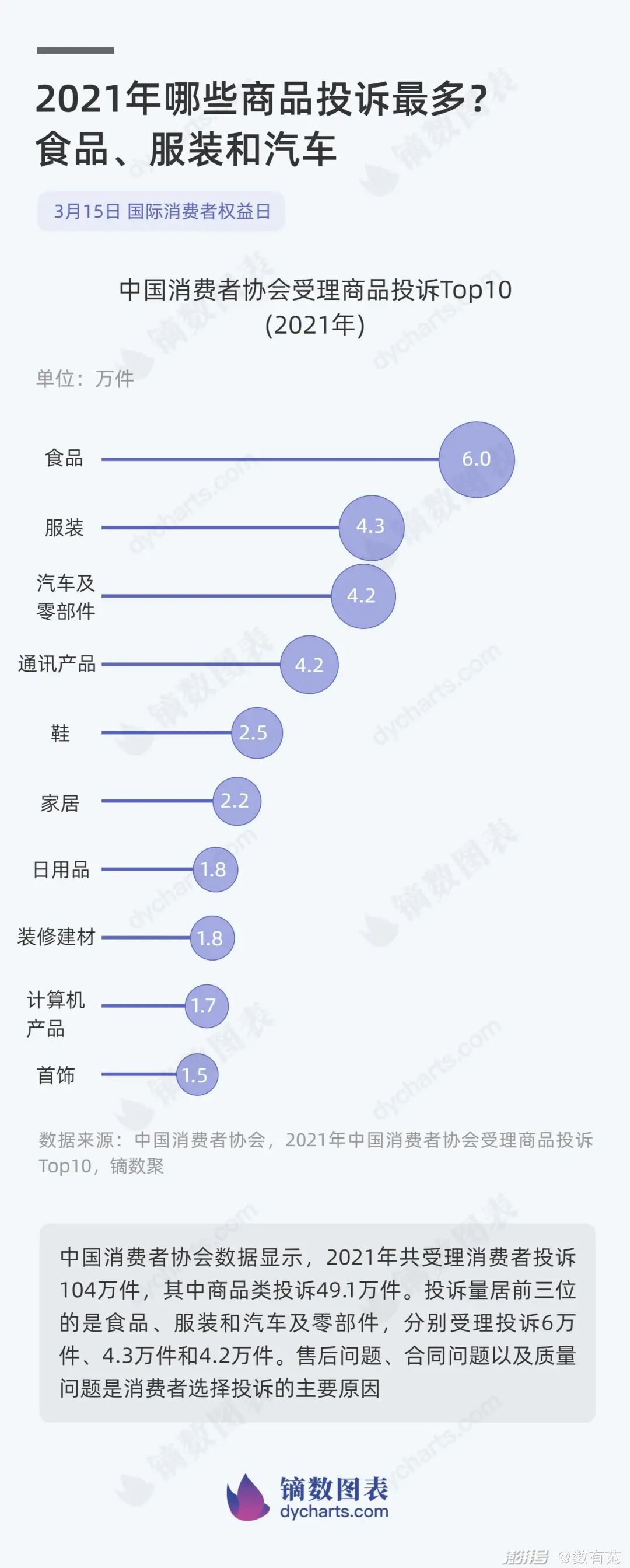 01. 2021年哪些商品投诉最多?食品、服装和汽车